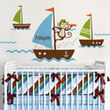 NEW DESIGN - Sailor Monkey on Sailing Boat Nautical- dd1047 Vinyl Wall Decal Sticker Art Girl Boy Nu